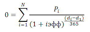 Где, Pi = i-я сумма денежного потока; di = дата i-й суммы; d1 = дата 1-й суммы (начальная дата, на которую дисконтируются все суммы).